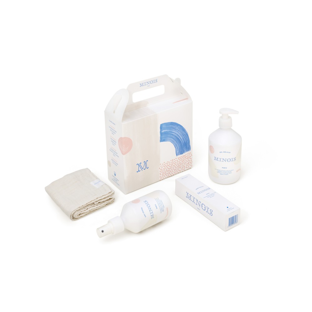 Minois 4-product set: 1 x 500ml Gentle Gel + 1 x 100ml Soft Cream + 1 x 250ml Light Water + 1 x Soft Cotton Cloth
